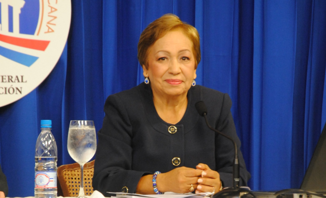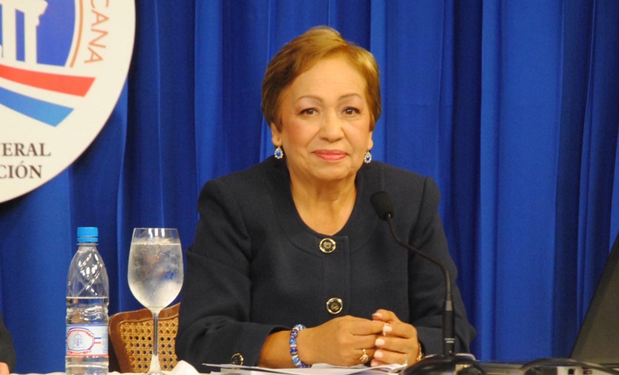 La directora del Consejo Nacional de Zonas Francas, Luisa Fernández, invitada del Encuentro Semana con los medios, que organiza la Dirección General de Comunicaciones de la Presidencia (DICOM), conducido por su director,señor Roberto Rodríguez Marchena cada lunes, en el Salón Orlando Martínez, del Palacio Presidencial.