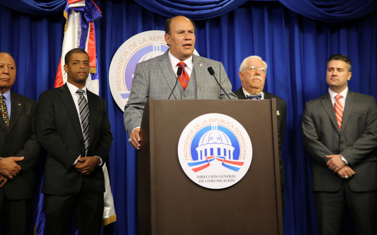 Ejecutivos del equipo Los Yankees de Nueva York, durante conferencia de prensa ofrecida en el Salón Orlando Martinez del Palacio Presidencial, luego de visita de cortesía realizada hoy, el presidente Medina.