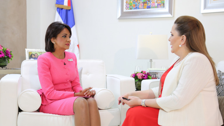 En su intervención, Montilla de Medina expuso los criterios y lineamientos que rigen, el trabajo que desarrolla desde el Despacho de la Primera Dama, así como su pasión de trabajar para la gente. Le acompaña, Jatnna Tavárez, conductora del "Con Jatnna", que se transite por el canal 9, Color Visión.
