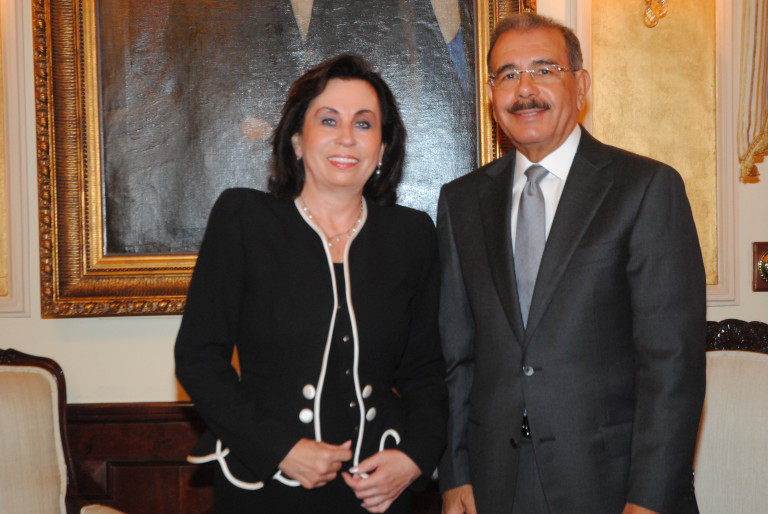 El presidente de la República Danilo Medina, junto a la señora Sandra Torres, ex primera dama de la República de Guatemala, y actual secretaria general del Partido Unión Nacional de la Esperanza (PUNE), durante visita de cortesía en compañía de comitiva.