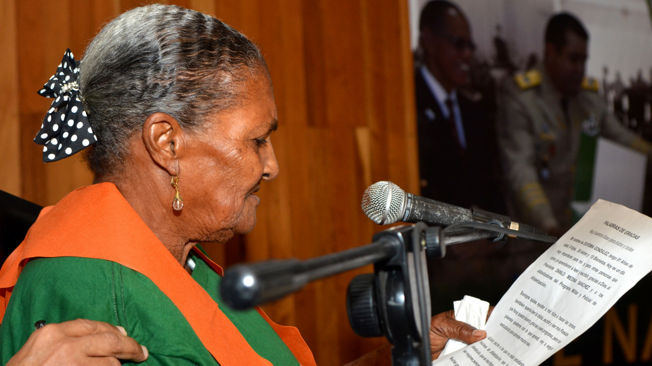 Eufemia González, de 84 años, quien fue alfabetizada mediante el Plan de Alfabetización que implementa el Gobierno, dijo estar orgullosa de graduarse, ya que “aprender nos hace mejores personas”, al hablar durante el acto de investidura, donde también invitó a los que aún no están estudiando a que se inscriban en los núcleos de alfabetización, señalando que leer y escribir abren muchas puertas.
