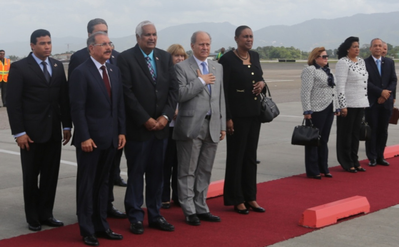 El Primer Mandatario dominicano tras arribar al aeropuerto de Piarco, de Puerto España, capital de las islas Trinidad y Tobago, fue recibido por el ministro de Relaciones Exteriores, Winston Dookeran; la jefa de Protocolo del Gobierno, Stacey Hinds y la embajadora de Trinidad y Tobago en República Dominicana, Reverend Iva Gloudon; así como por el embajador dominicano en esa nación, José Serulle.