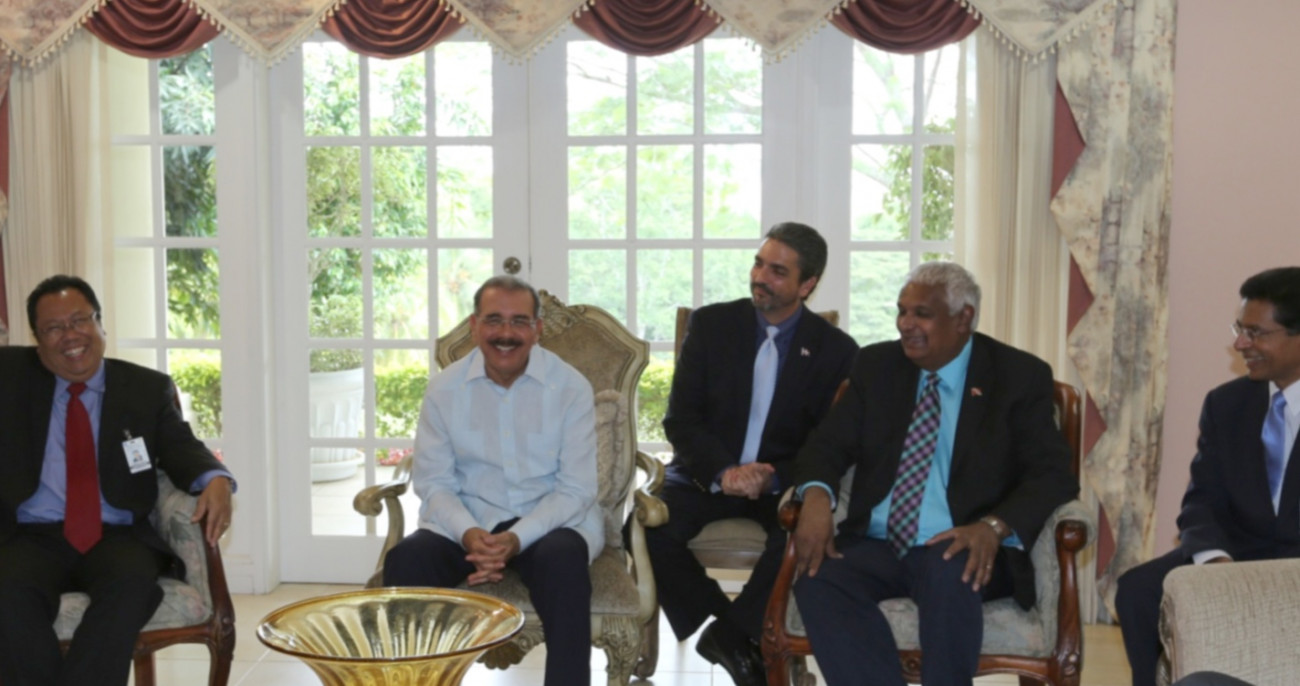 El presidente Danilo Medina y la comitiva que le acompaña, conversan con el canciller Winston Dookeran y Jefes de Gobierno de la Comunidad del Caribe (CARICOM).