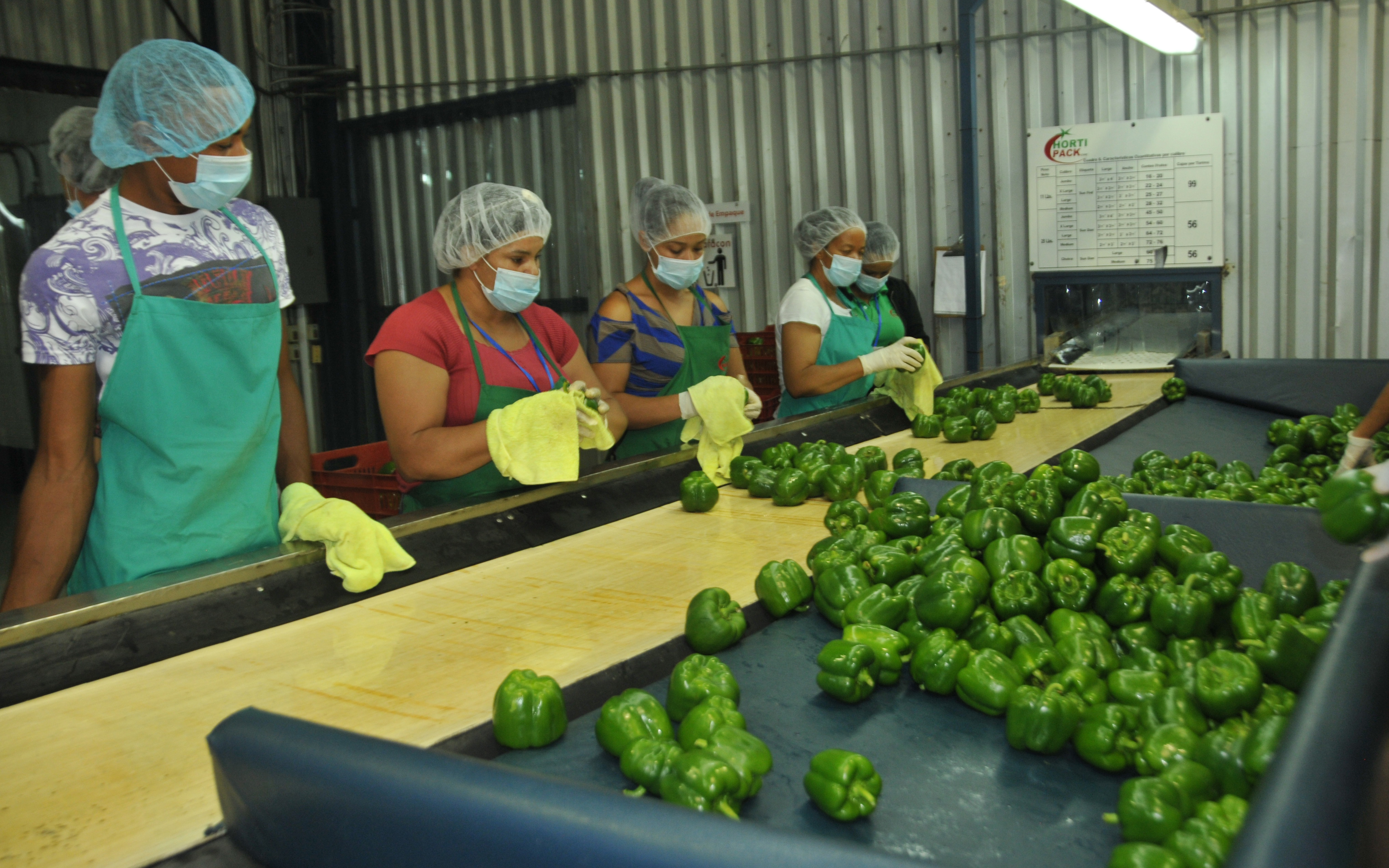 Trabajadoras durante sus labores de empaque en el clúster agropecuario HortiPack, en Constanza.