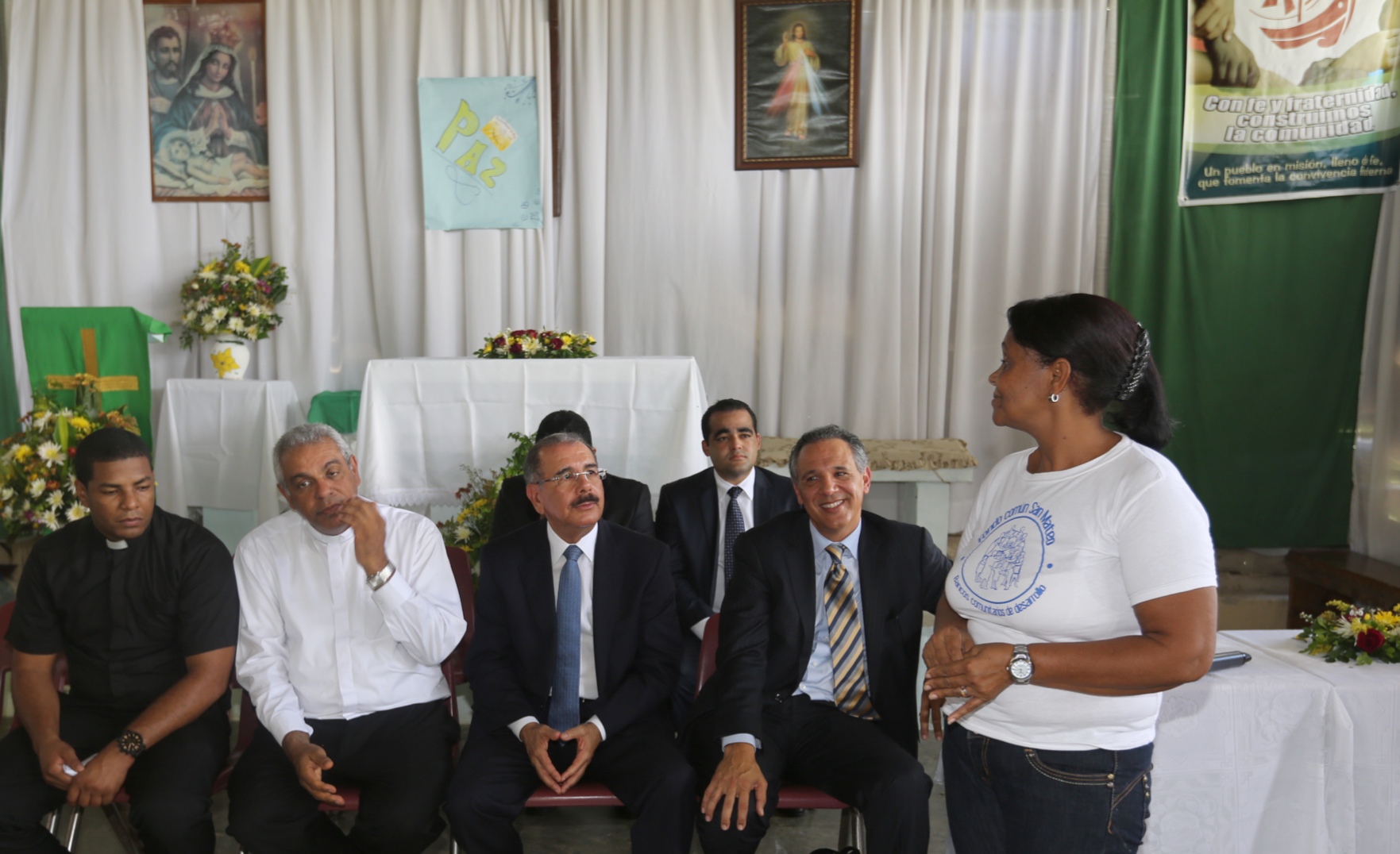 Reunión sostenida entre el presidente Medina, líderes comunitarios y sus respectivos sacerdotes, de las parroquias visitadas por el Mandatario hoy. Figura el ministro José Peralta, entre otros.