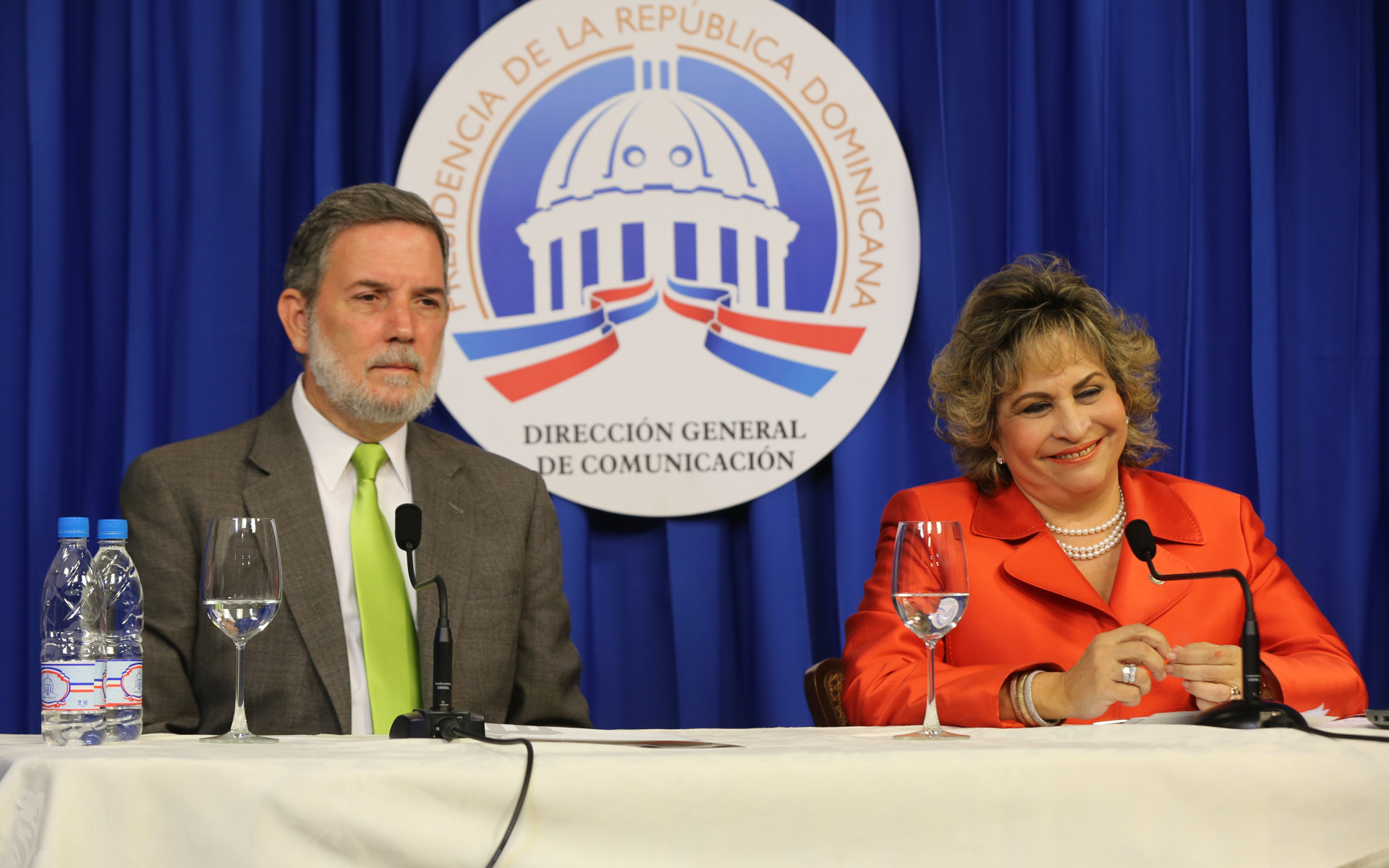 Encuentro con la prensa de la licenciada Alexandra Izquierdo, directora general del Centro de Desarrollo y Competitividad Industrial (PROINDUSTRIA),efectuado el el Salón Orlando Martínez del Palacio Nacional. Le acompaña el señor Roberto Rodríguez Marchena, director general de Comunicaciones de la Presidencia,