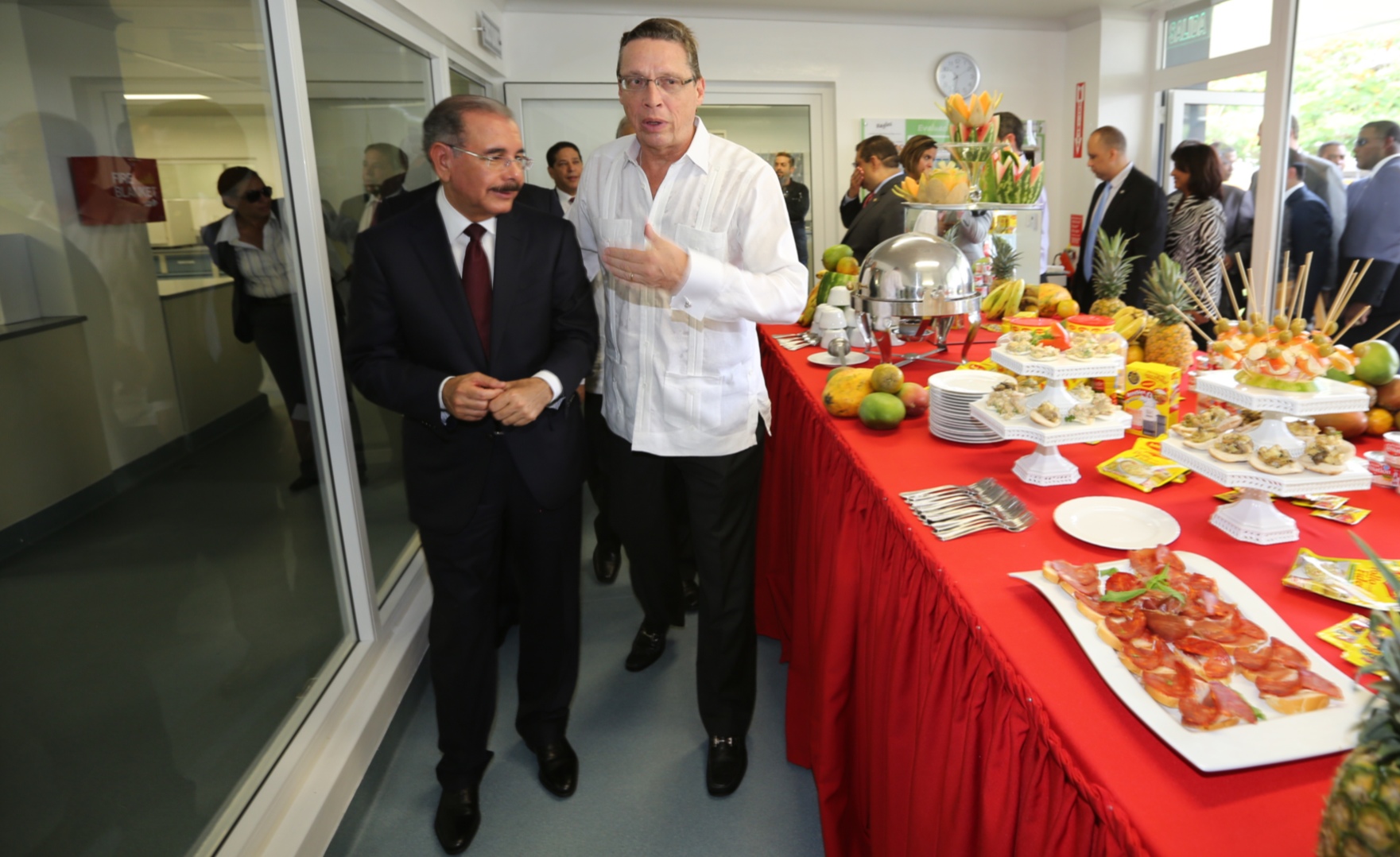 El presidente Danilo Medina, acompañado del presidente de Nestlé Dominicana, Claude Mamboury, durante recepción por inauguración de su nueva y moderna planta, ubicada en la ciudad de San Francisco de Macorís.