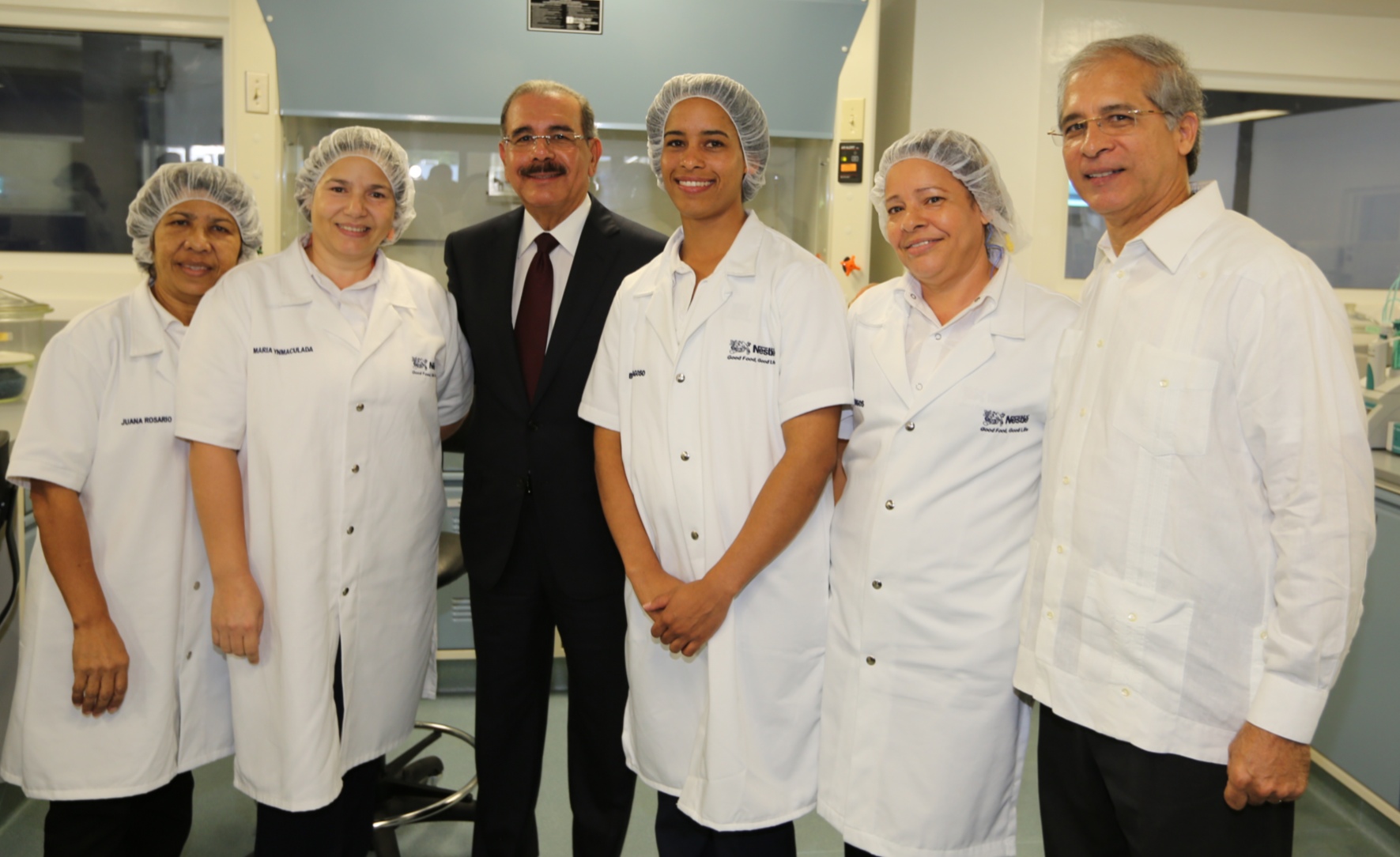 El presidente Danilo Medina junto a empleadas y directivos de Nestlé Dominicana, la cual cumplió 56 años de estar instalada en República Dominicana.