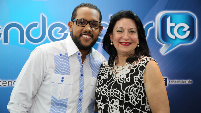 Señora Rosa Rita Álvarez y el comunicador Leonardo Grisanty, integrante del programa “Tendencias TV”, que se transmite por el canal Amé 47.