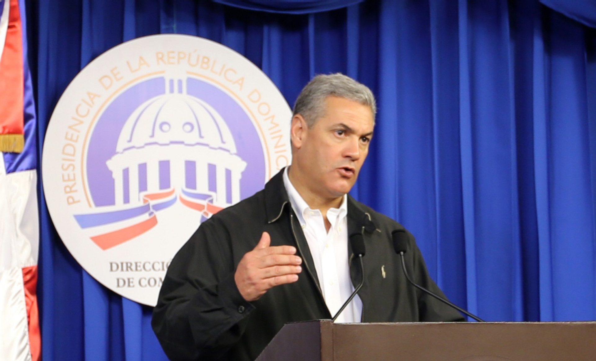 Ministro Gonzalo Castillo, durante conferencia de prensa efectuada hoy, en el Salón Orlando Martínez, del Palacio Presidencial.