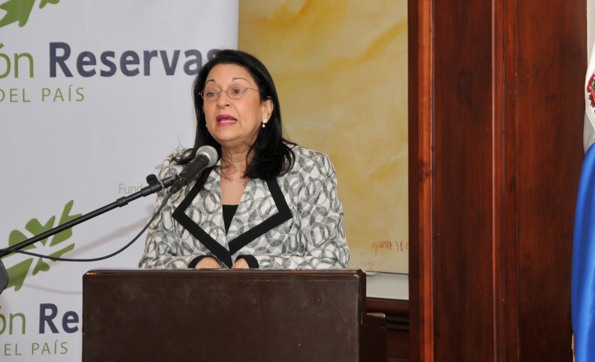 Rosa Rita Álvarez, directora ejecutiva de Fundación Reservas del País, al ofrecer el taller titulado: “Construcción de Propuestas para el Fortalecimiento de las Microfinanzas: Perspectivas ONGs y Cooperativas”, organizado por la Fundación Reservas del País, para representantes de Cooperativas y Organizaciones sin Fines de Lucro (ONGs) con la finalidad de fortalecer las microfinanzas.