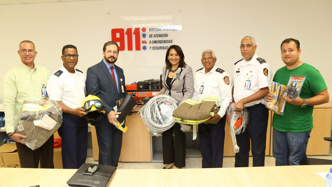 El Gobierno de Estados Unidos donó al Sistema Nacional de Atención a Emergencias y Seguridad 9-1-1 equipos especializados para ser utilizados por los agentes del Cuerpo de Bomberos de San Cristóbal y Haina que ofrecen servicio a la ciudadanía. 11 de mayo de 2016.