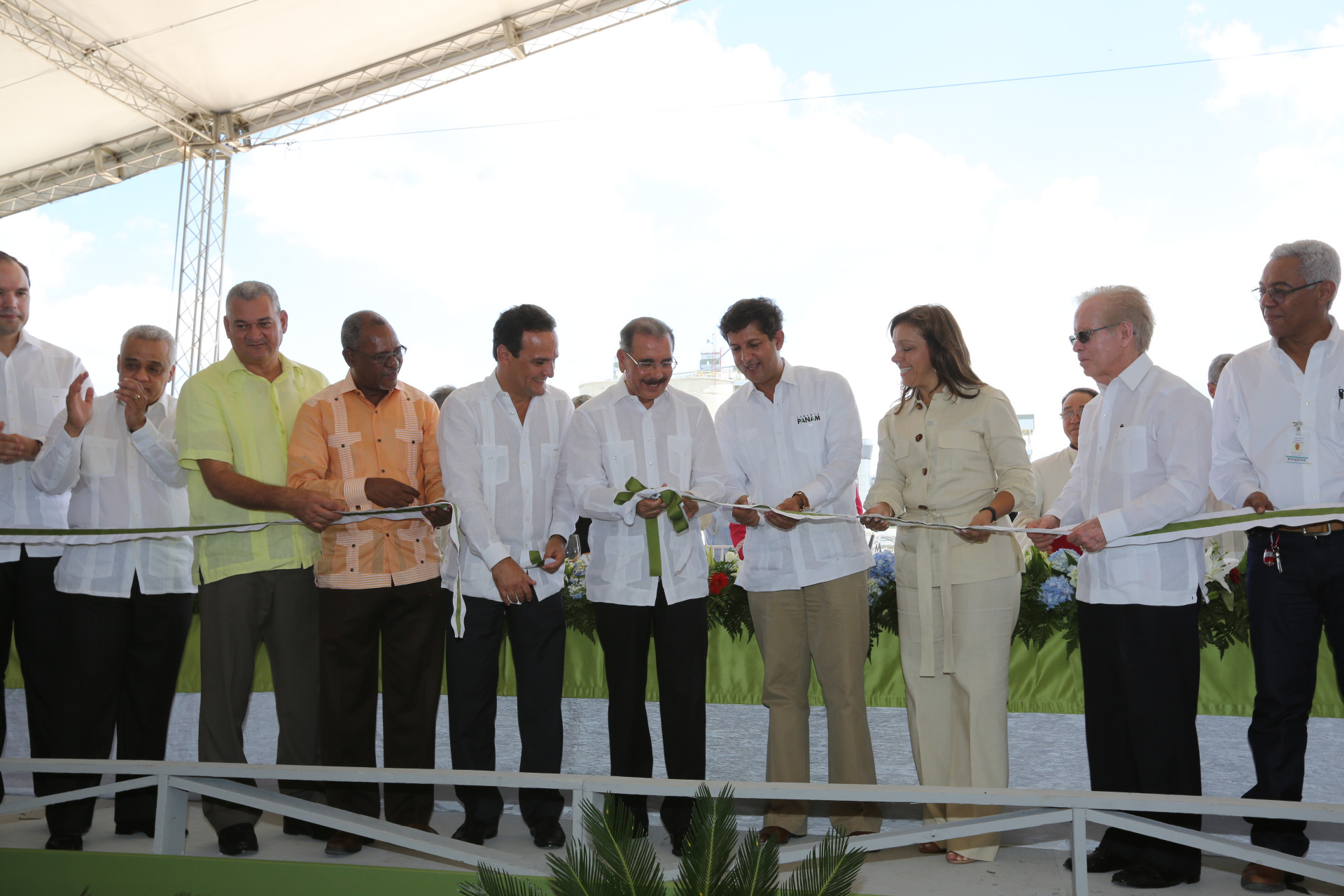 Acto inaugural de las instalaciones de Cemento PANAM, encabezado por el presidente de la República, Danilo Medina, junto al presidente del Grupo Estrella y accionistas del proyecto, Manuel Estrella, quien aseguró que el Gobierno de Danilo Medina, garantiza en el país un ambiente de seguridad jurídica de libre comercio y de libertad de empresa. Figuran también otros altos ejecutivos de la empresa e invitados especiales que asistieron al acto.
