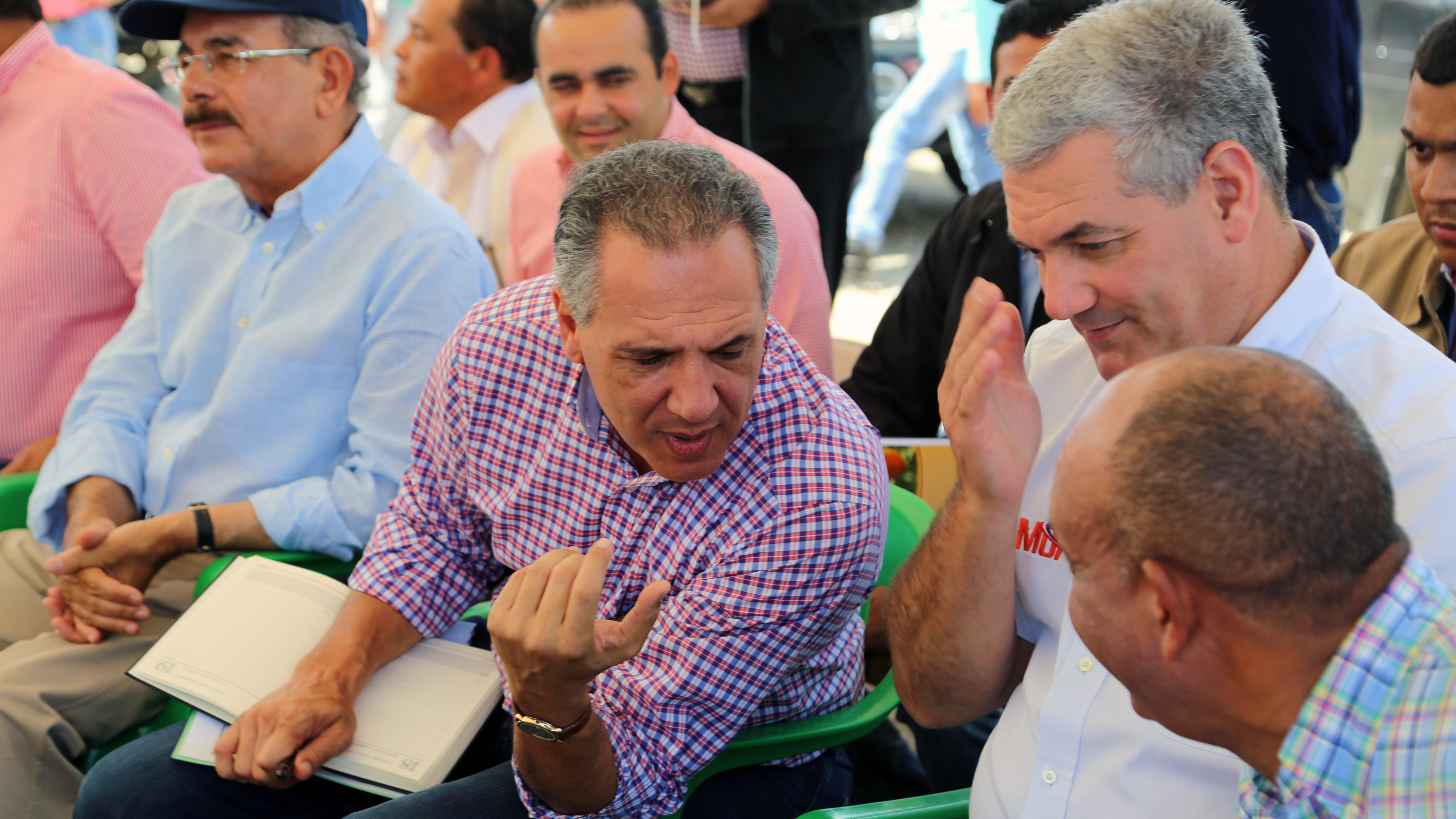 Acompañaron al presidente Danilo Medina los ministros Administrativo de la Presidencia, José Ramón Peralta; de Obras públicas, Gonzalo Castillo; de Agricultura, Ángel Estévez; el director de los Fondos Especiales para el Desarrollo Agropecuario, Antonio López y el administrador del Banco Agrícola, Carlos Segura Foster. 22 de mayo de 2016.