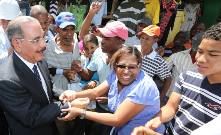 El presidente Danilo Medina al recibir muestras de agradecimiento de los azuanos, durante su visita a la zona, donde el Mandatario dispuso la reconstrucción del mercado municipal, destruido por un reciente incendio.