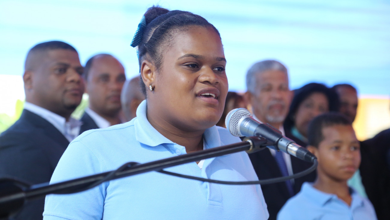 Jessica Mueses, estudiante de cuarto grado de media, de la comunidad La Cuaba, agradeció al presidente Danilo Medina por la nueva escuela.