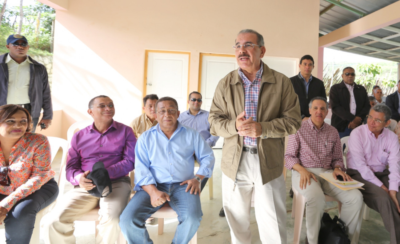 El Mandatario durante su encuentro con productores agrícolas de la zona. Figuran también el ministro de la Presidencia, José Ramón Peralta y miembros de la comisión de seguimiento.