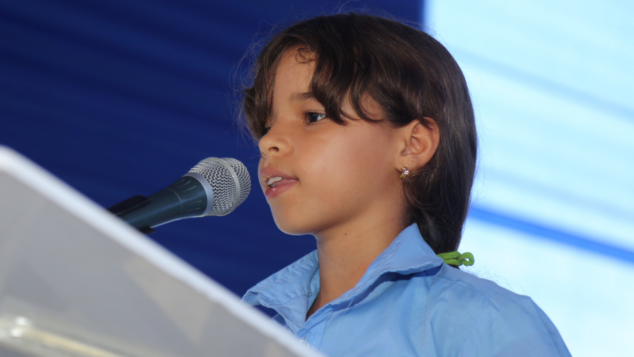 Jarleen Chang Carrasco, estudiante de quinto grado de básica, destacó que Danilo Medina es el único presidente que se ha entregado en mejorar la educación dominicana, por lo que la comunidad está regocijada con esta obra.