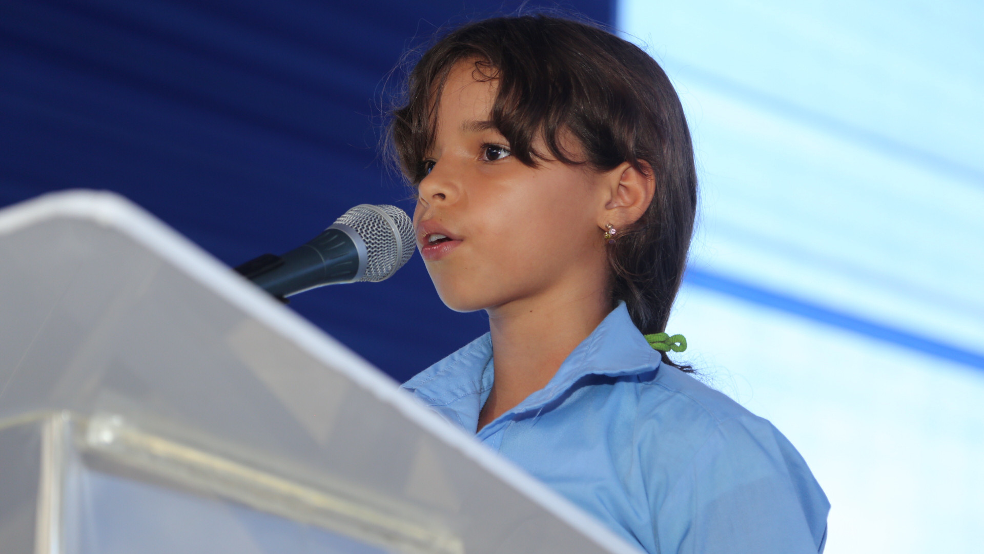 Jarleen Chang Carrasco, estudiante de quinto grado de básica, destacó que Danilo Medina es el único presidente que se ha entregado en mejorar la educación dominicana, por lo que la comunidad está regocijada con esta obra.