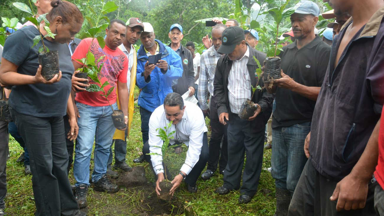 En cumplimiento a una promesa hecha por el presidente Danilo Medina, durante una visita sorpresa a Los Cacaos, San Cristóbal; el Instituto Agrario Dominicano inició la sembró de un millón de plántulas de café, de la variedad Catimor.