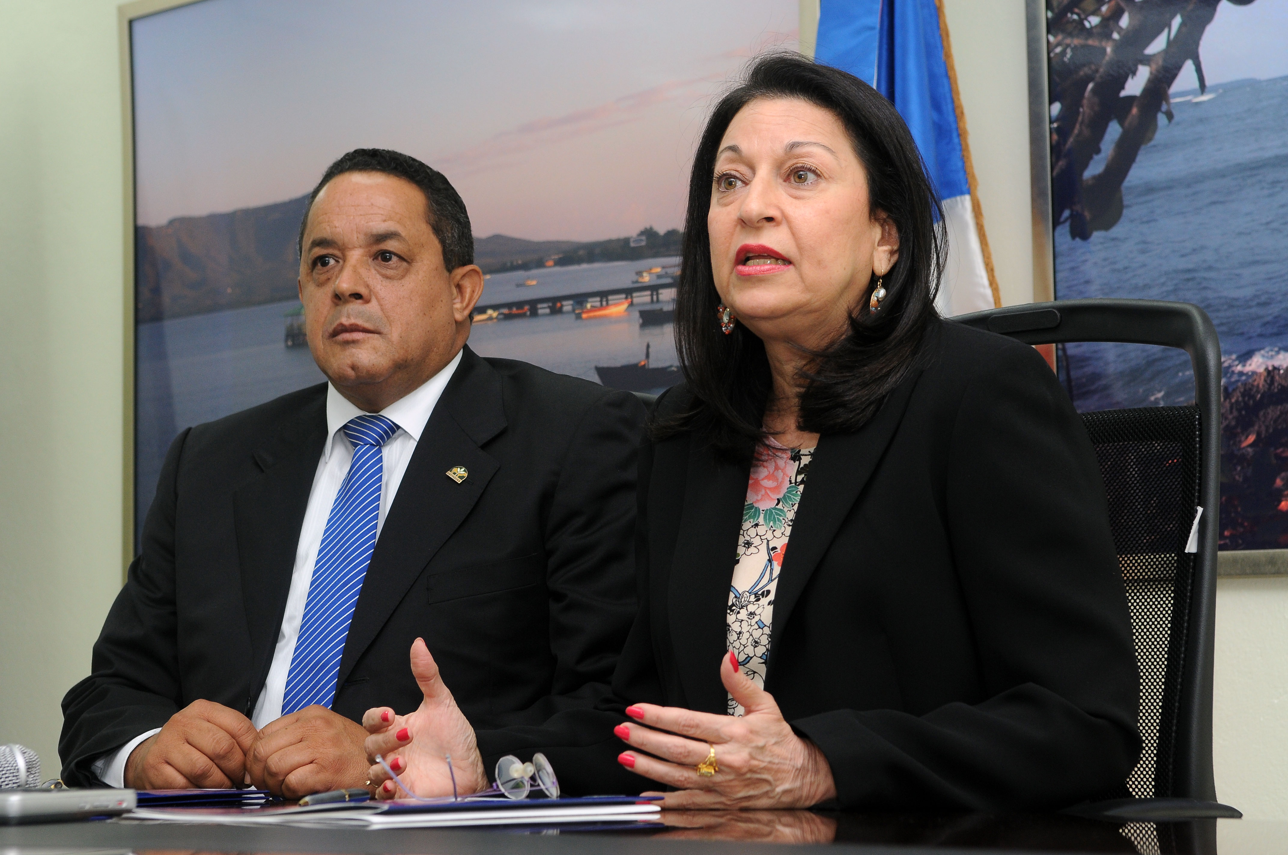 Rosa Rita Álvarez, directora de la Fundación Reservas del País y Emilio Toribio Olivo, gerente de AGRODOSA, durante la firma del acuerdo de cooperación.