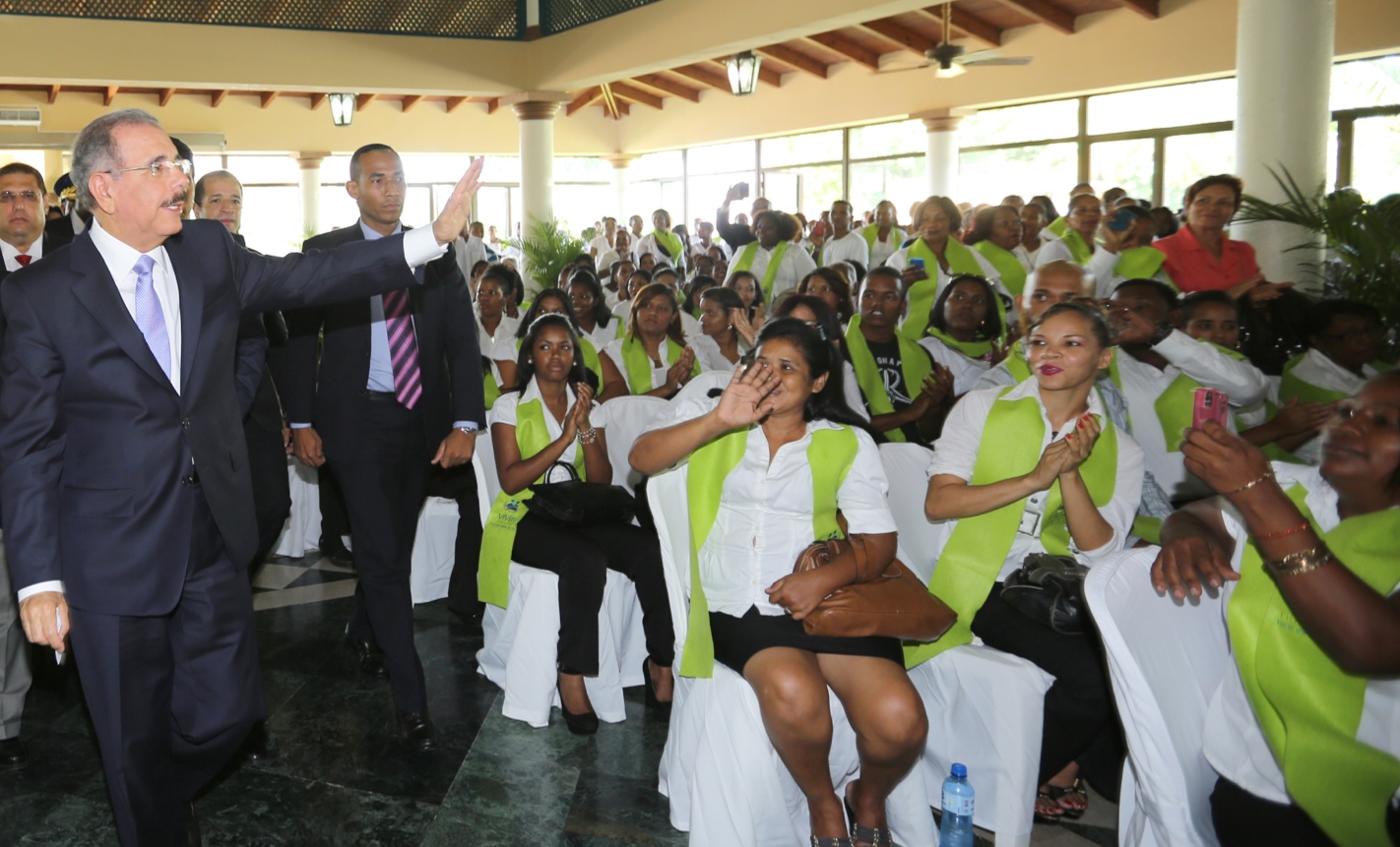 El presidente de la República, Danilo Medina, encabeza un cto de graduación de 1,846 jóvenes, en su mayoría mujeres, del programa “Vivir Tranquilo”, que coordina el Ministerio de Interior y Policía.