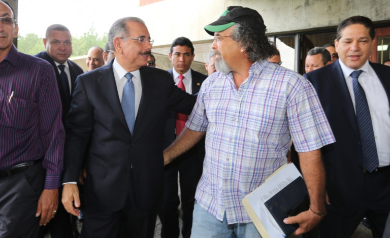 El presidente Danilo Medina y el conocido padre Rogelio, durante un recorrido por las instalaciones del centro.