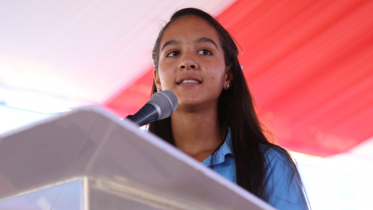 Melanie Pimentel, estudiante de octavo grado de básica, tuvo a su cargo agradecer en nombre de sus compañeros por la obra, indicando que se entregarán por entero para tener una mejor sociedad.