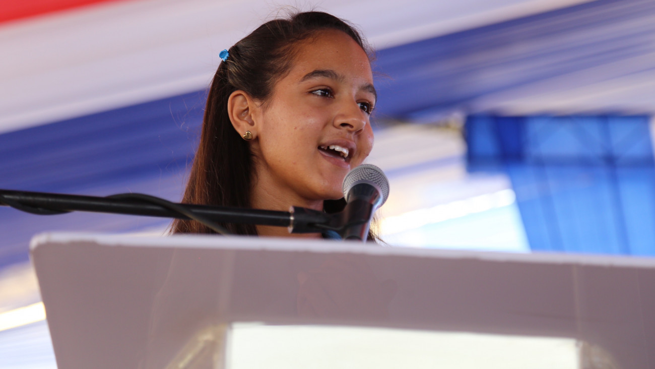 Melanie Pimentel, estudiante de octavo grado de básica, tuvo a su cargo agradecer en nombre de sus compañeros por la obra, indicando que se entregarán por entero para tener una mejor sociedad.
