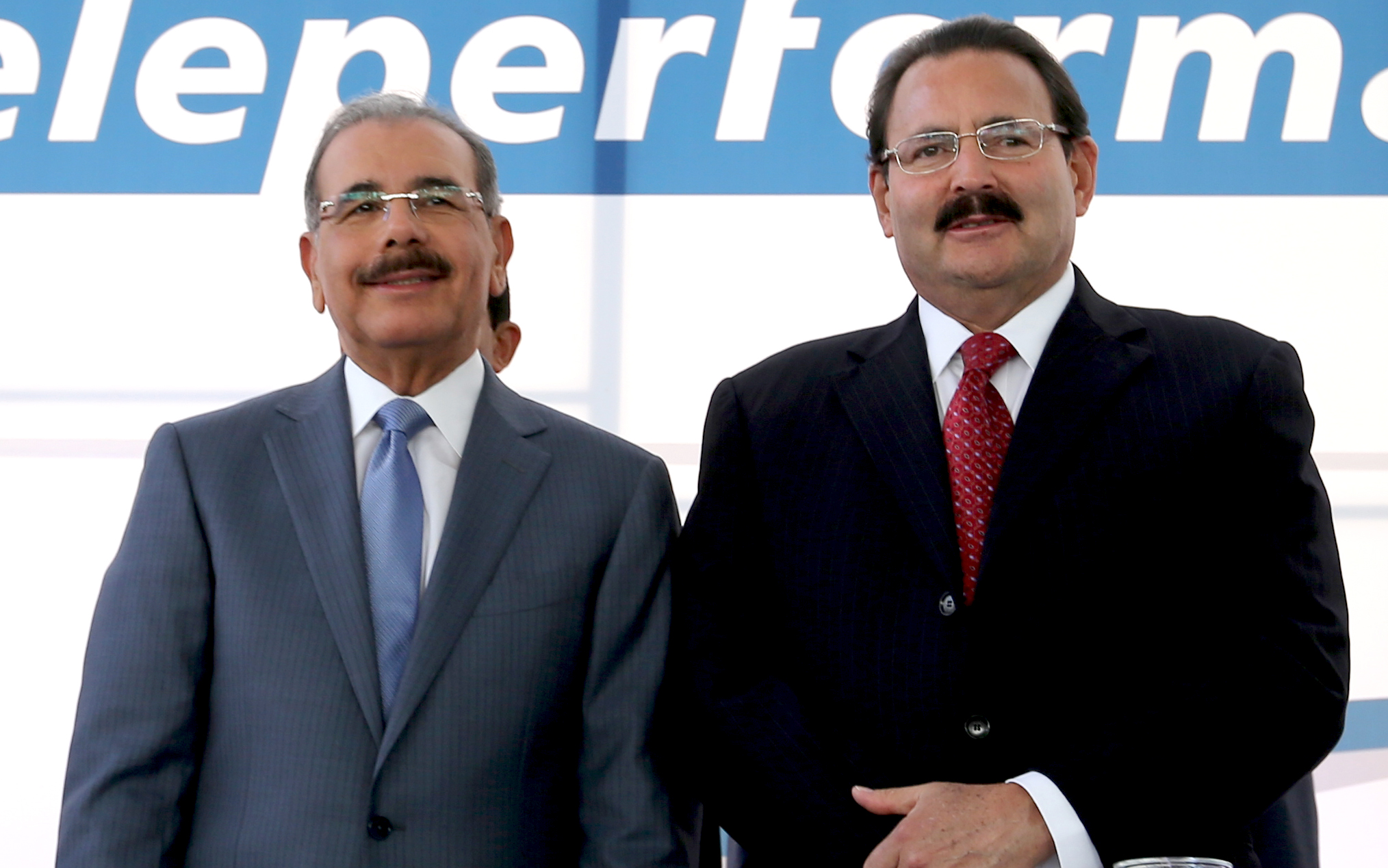 Presidente de la República, Danilo Medina, al encabezar el acto inaugural junto a ejecutivos de Teleperformance.