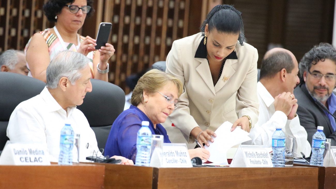 La presidenta de Chile, Michelle Bachelet, firmó como testigo durante el histórico acuerdo celebrado en Cuba por el alto al fuego bilateral y definitivo entre el gobierno colombiano y las FARC-EP.