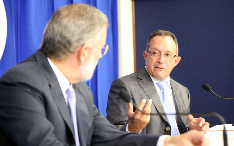 Roberto Rodríguez Marchena, director de DICOM y Ángel Estévez, administrador general del Banco Agrícola