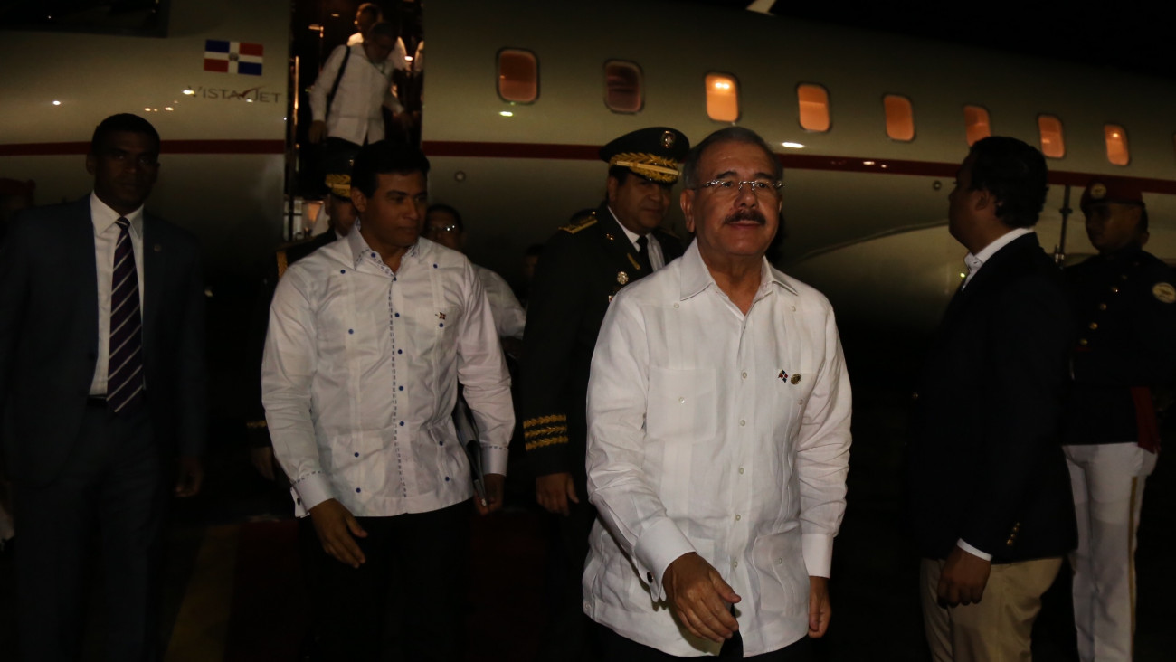El presidente Danilo Medina, llegó al país la noche de este domingo, luego de participar junto a otros jefes de Estado y de Gobierno, en el acto inaugural de la ampliación del Canal de Panamá, el que consideró una obra monumental.