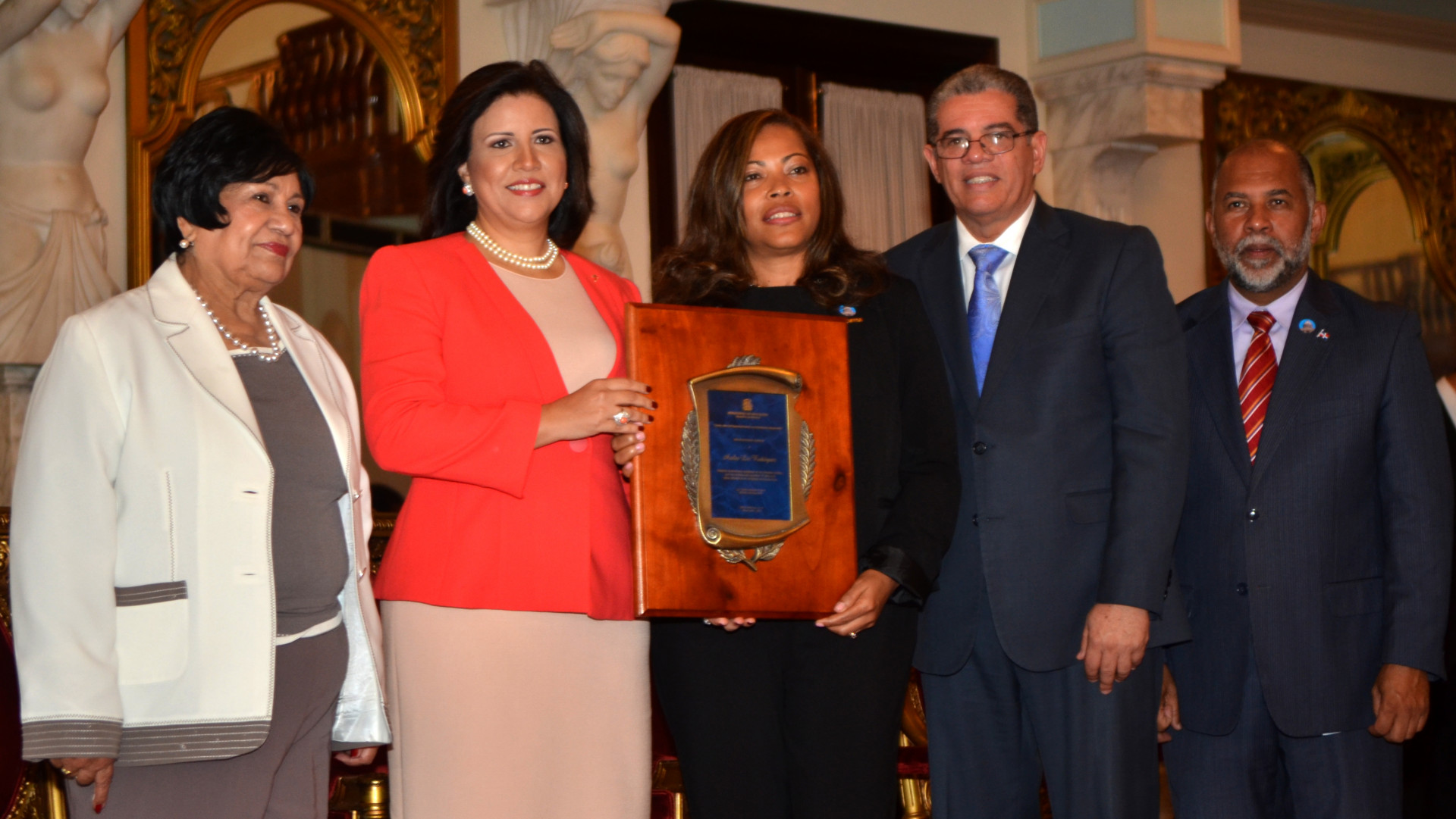 Los ministros de Educación, Carlos Amarante Baret y de Educación Superior, Ciencia y Tecnología, así como el presidente de la Asociación Dominicana de Profesores, Eduardo Hidalgo, acompañaron a la vicepresidenta de la República durante la emotiva ceremonia, que tuvo lugar en el salón Las Cariátides del Palacio Nacional.