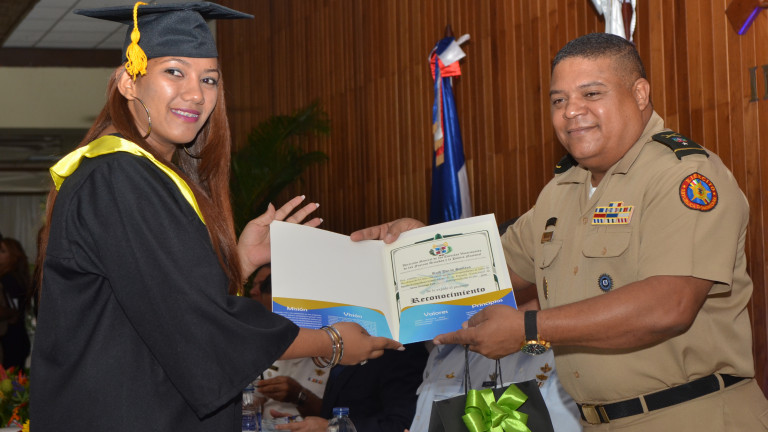Las gracias en nombre de los graduandos las ofreció Ángel Almonte, graduado con honores en Oratoria, mientras que Teresita Yocasta Liriano recibió un reconocimiento por sus altos índices académicas.