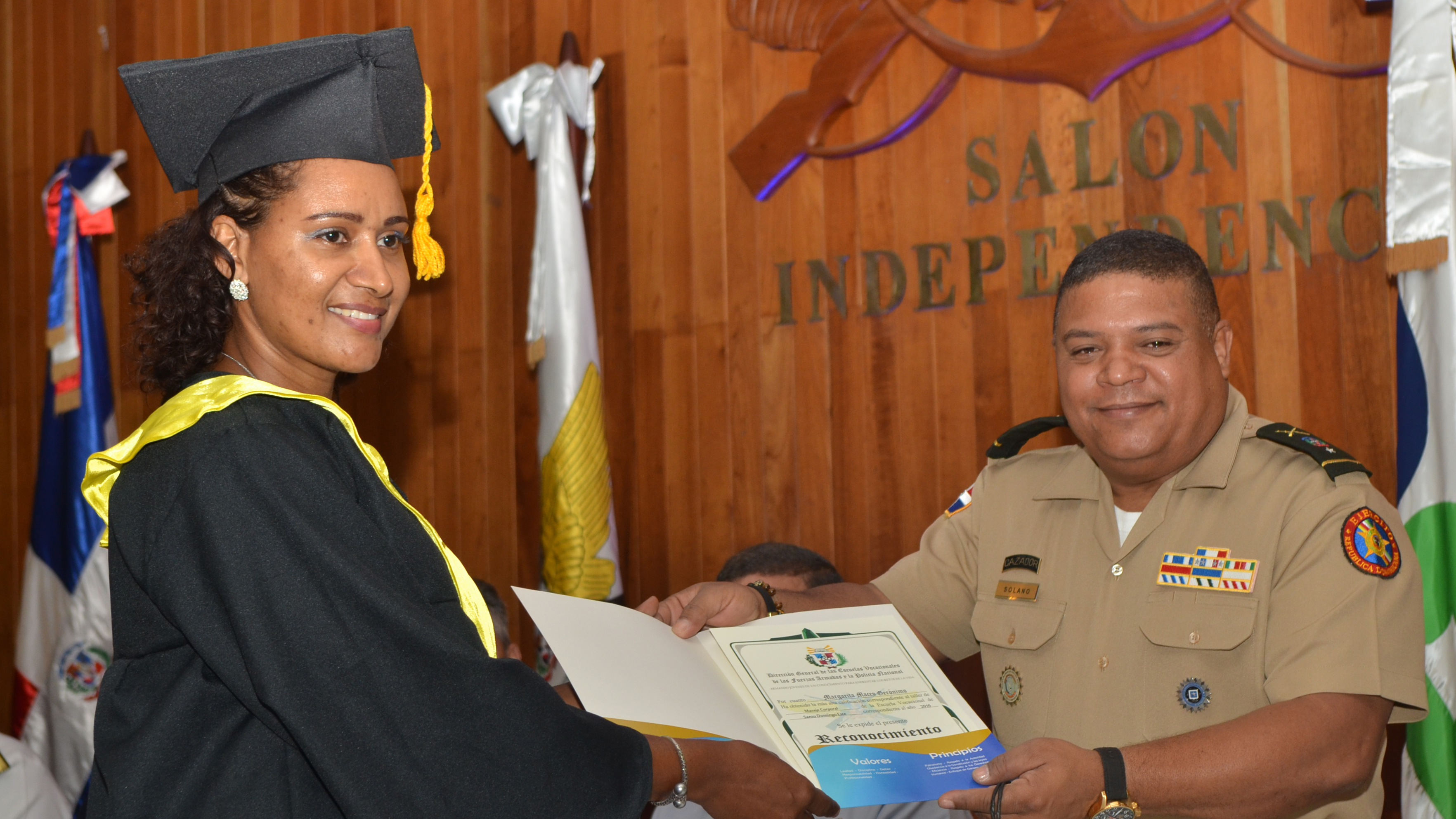 Las gracias en nombre de los graduandos las ofreció Ángel Almonte, graduado con honores en Oratoria, mientras que Teresita Yocasta Liriano recibió un reconocimiento por sus altos índices académicas.