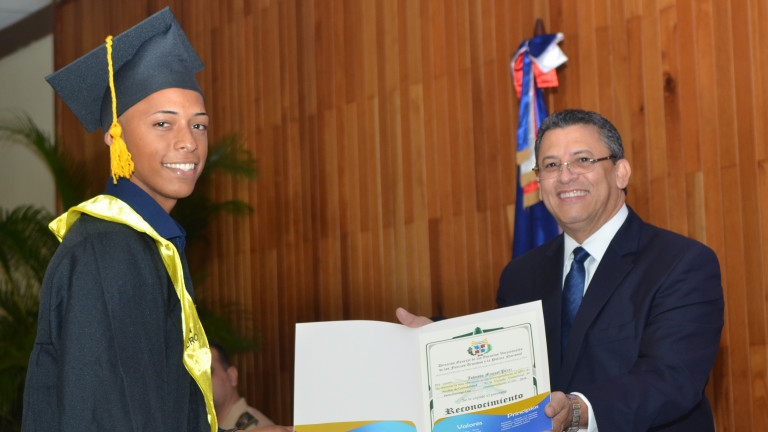 Las gracias en nombre de los graduandos las ofreció Ángel Almonte, graduado con honores en Oratoria, mientras que Teresita Yocasta Liriano recibió un reconocimiento por sus altos índices académicas.