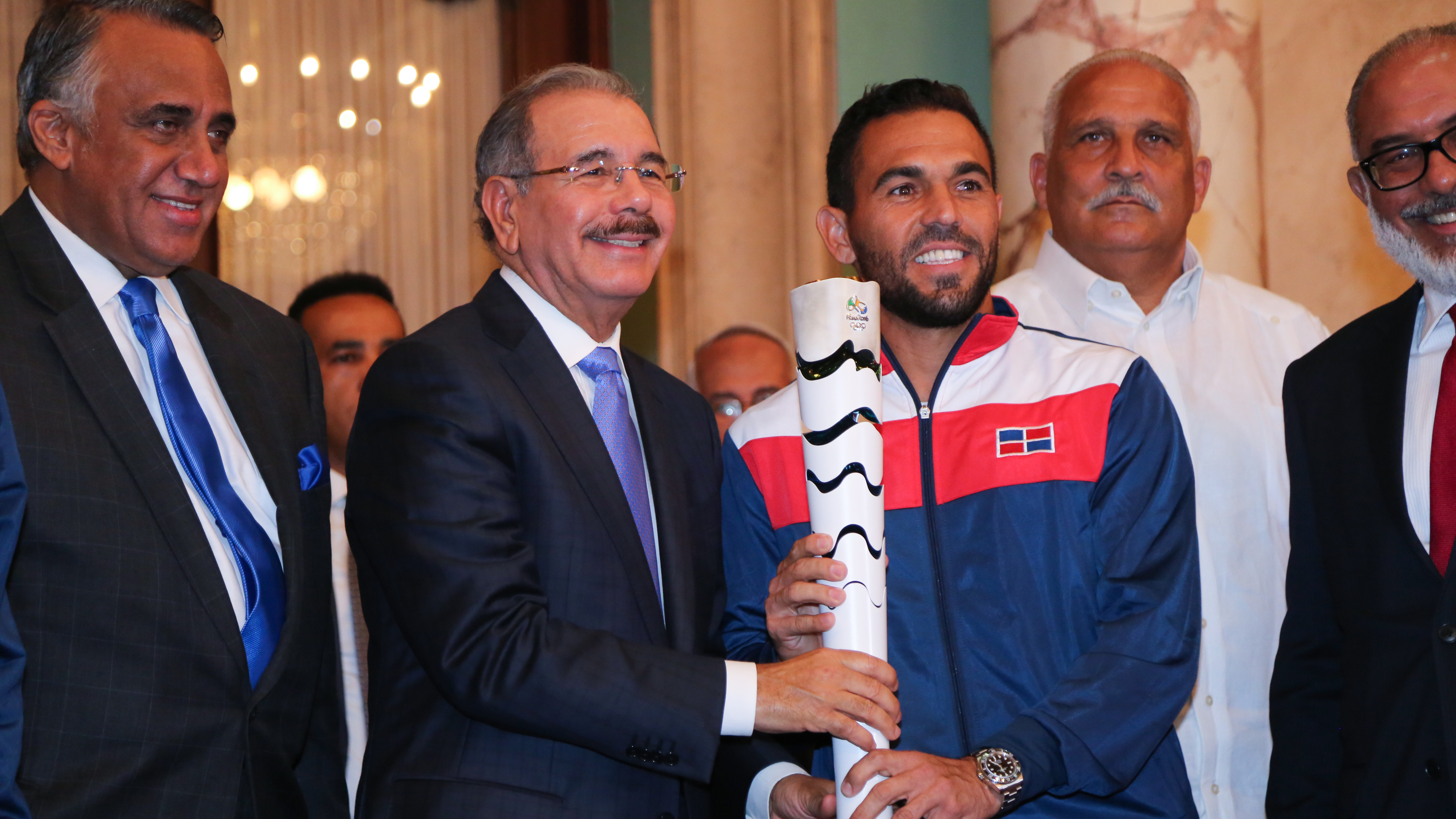 El presidente Danilo Medina recibió hoy a los miembros de la delegación dominicana de atletas que representarán al país en los Juegos Olímpicos de Río 2016, a quienes pidió elevar bien en alto la Bandera Dominicana.