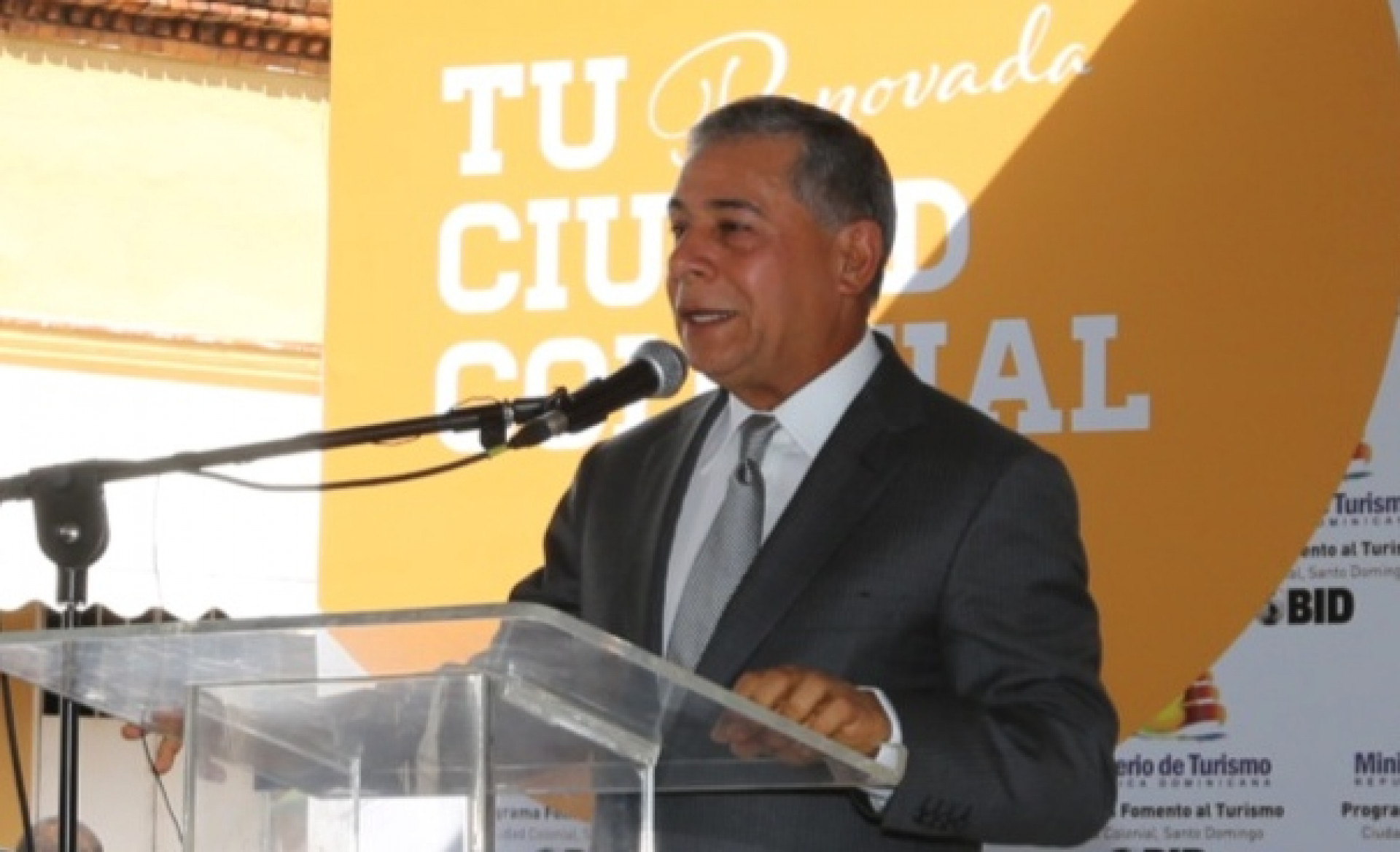 El alcalde del Distrito Nacional, Roberto Salcedo, da la bienvenida a los asistentes al acto.