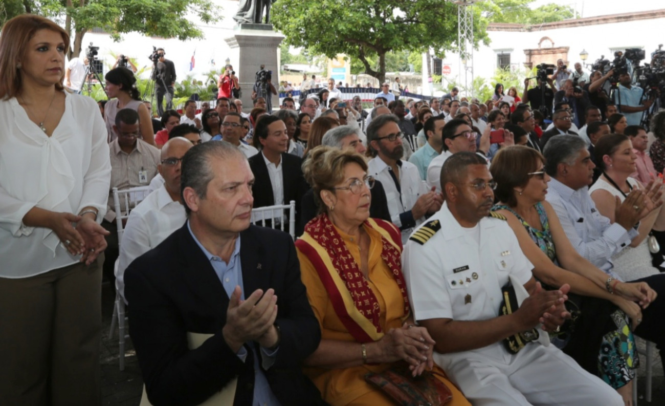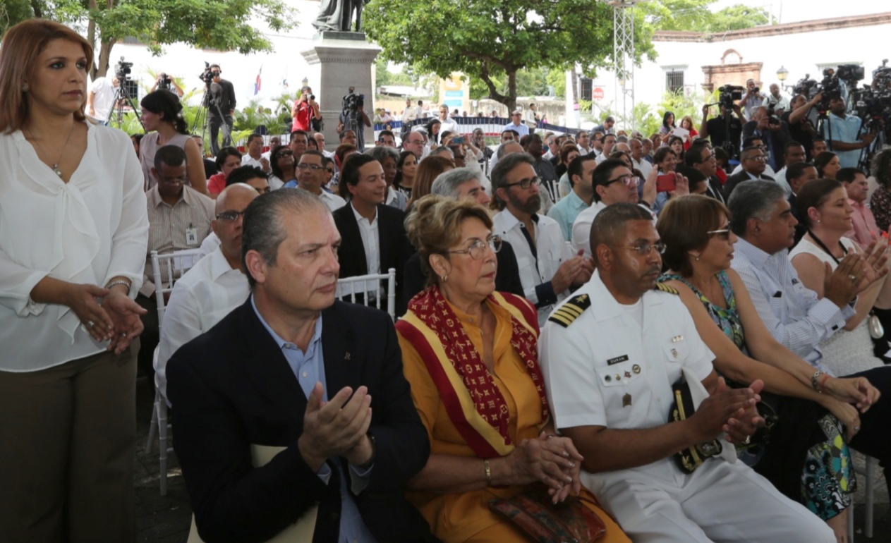 Parte del público presente en la plazoleta Padre Billini, durante el acto de inicio de los trabajos del proyecto Reforma Integral de Calles Priorizadas en la Ciudad Colonial, labor coordinada con diferentes entidades públicas y privadas, nacionales e internacionales.