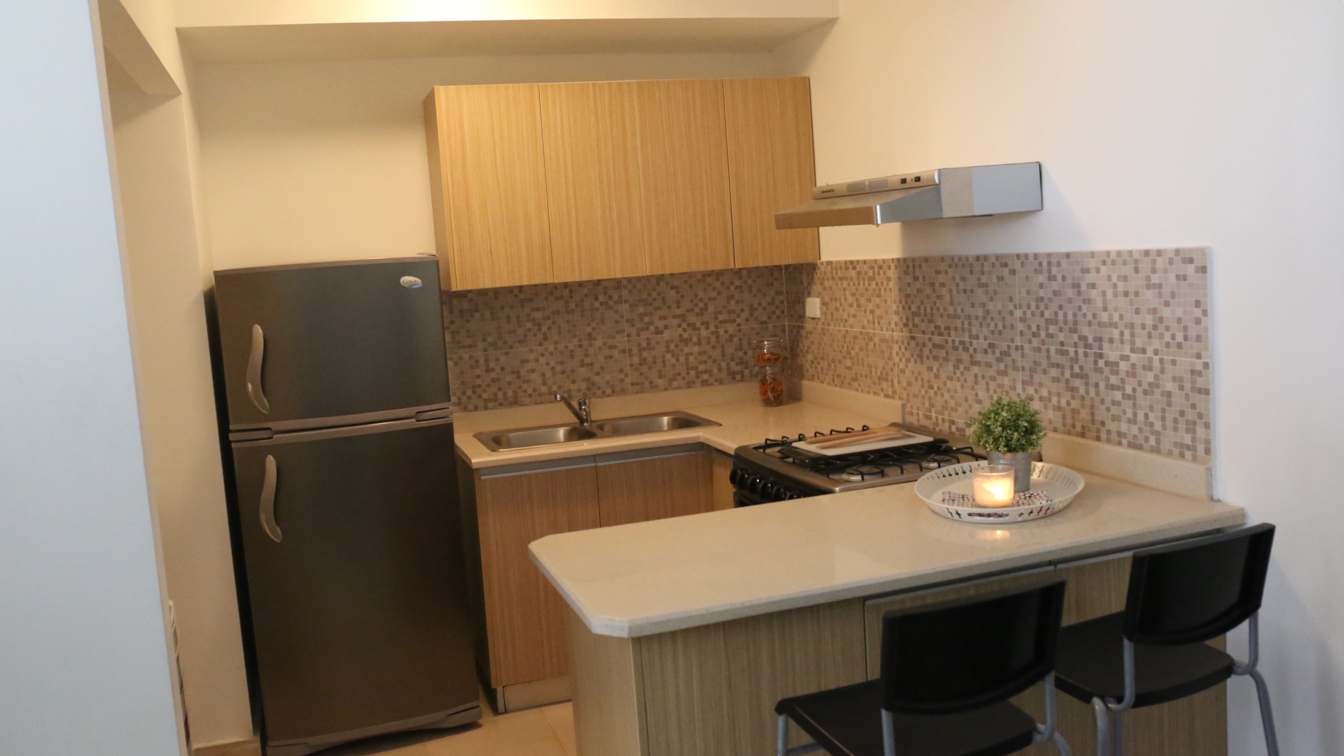Área de cocina de uno de los apartamentos del Proyecto Habitacional Ciudad Juan Bosch, considerada como la principal iniciativa del gobierno de Danilo Medina en lo que tiene que ver con la vivienda popular de bajo costo.