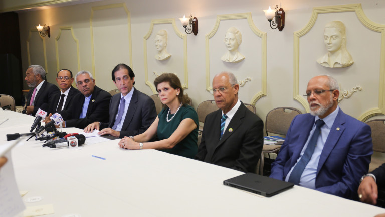 Integraron la comisión que presentó el informe, Elena Villeya, presidenta de la Acción Empresarial por la Educación EDUCA; Mons. Gregorio Nicanor Peña, representando a la Conferencia del Episcopado Dominicano; José Ramón Holguín, rector de la Asociación de Universidades no Alineadas (AUNA), y Pedro Luis Castellanos, entre otros.