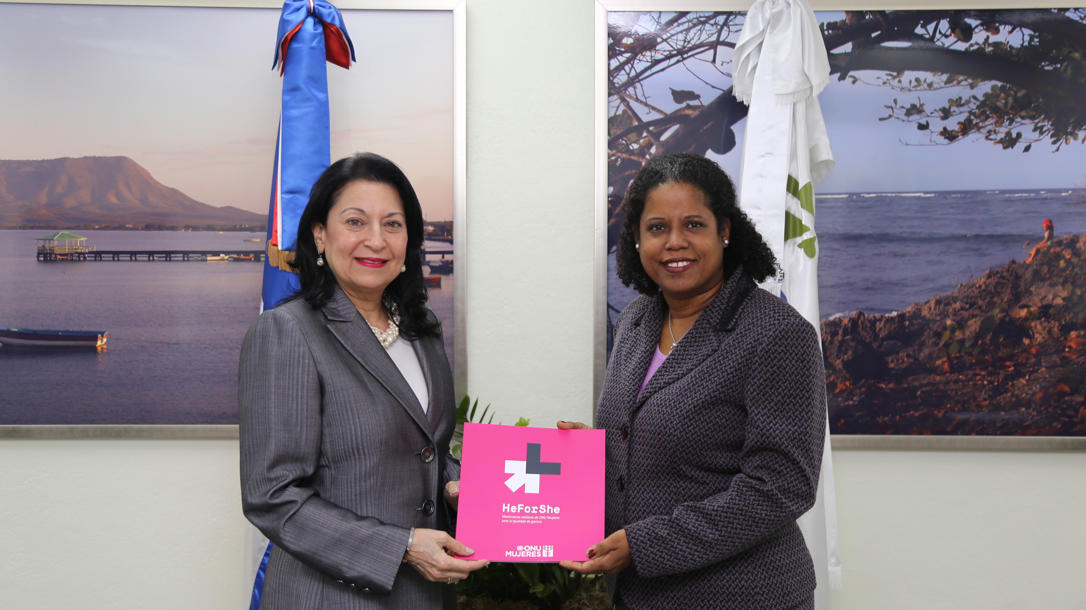 La directora ejecutiva de la Fundación Reservas del País, Rosa Rita Álvarez, y la asesora nacional de género de ONU Mujeres, Miosotis Rivas Peña, acordaron establecer un memorándum de cooperación para potenciar el desarrollo de las mujeres dueñas de microempresas.