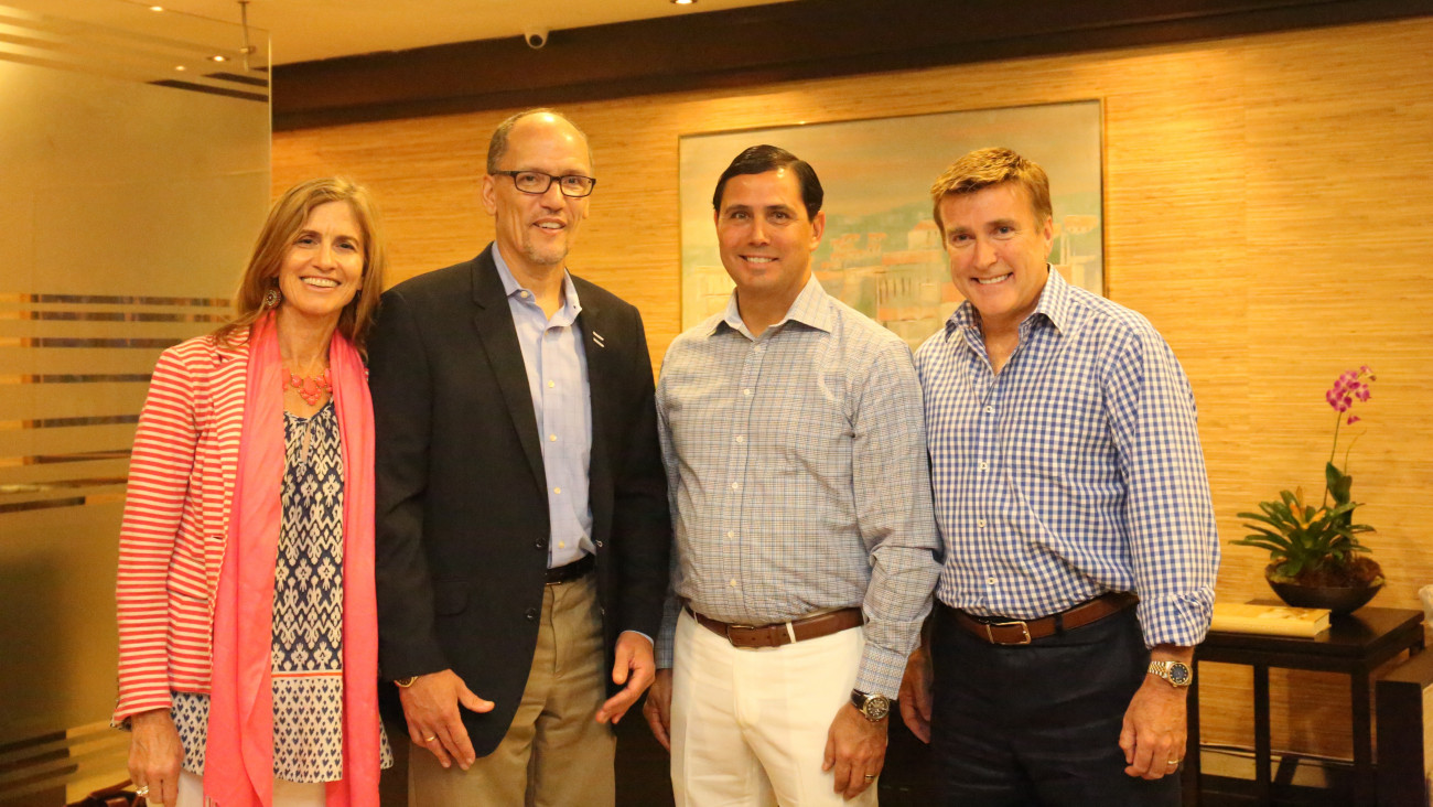 Thomas Edward Pérez, Ann Marie Staudenmaier, James Brewster y esposo Bob J. Satawake, en el Aeropuerto Internacionales de La Américas, al momento de recibirlos.