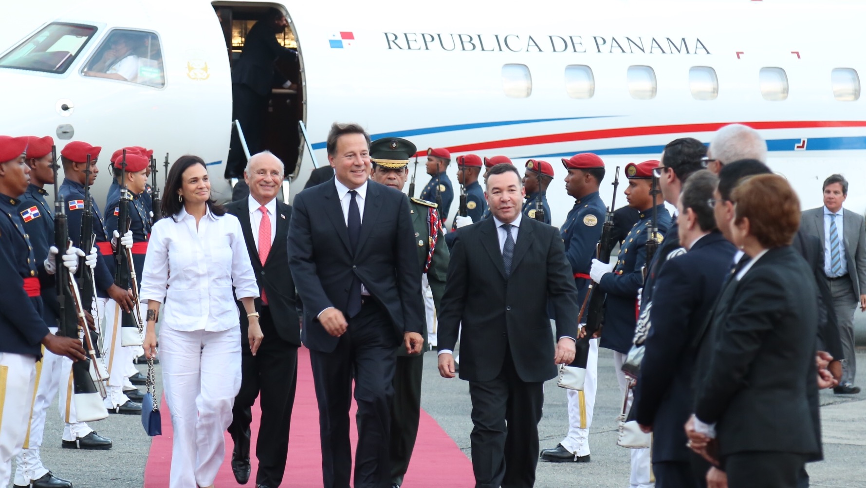 El presidente Juan Carlos Varela llegó acompañado de Isabel de Saint Malo, vicepresidenta y Ministra de Relaciones Exteriores de Panamá, para asistir a los actos de juramentación del presidente Danilo Medina.