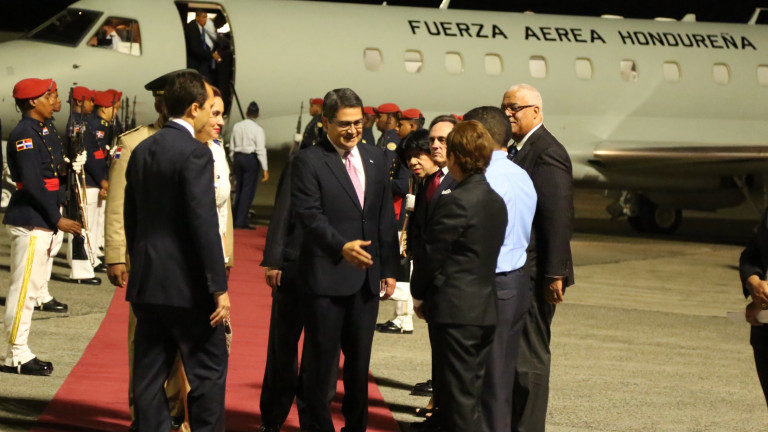 Llegada del presidente de Honduras, Juan Orlando Hernández junto a su esposa, Ana García de Hernández y el ministro de la Presidencia, Reynaldo Sánchez a República Dominicana para asistir a los actos de juramentación del presidente Danilo Medina. Foto: Presidencia República Dominicana Nota de prensa: presidencia.gob.do/noticias/presidente-de-honduras-llega-...