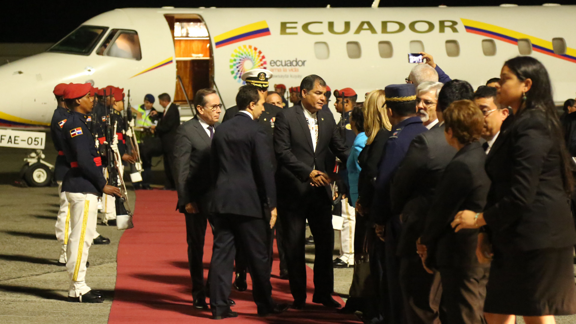 Presidente Rafael Correa llega; acompañará a Danilo Medina en su juramentación