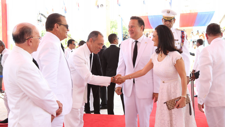 Presidente de Panamá, Juan Carlos Varela, y su esposa, Lorena Castillo de Varela, a su llegada al Congresos Nacional.