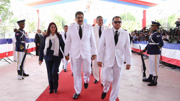 El presidente de la República Bolivariana de Venezuela, Nicolás Maduro y acompañantes, llegan al Congreso Nacional para participar en el acto juramentación.