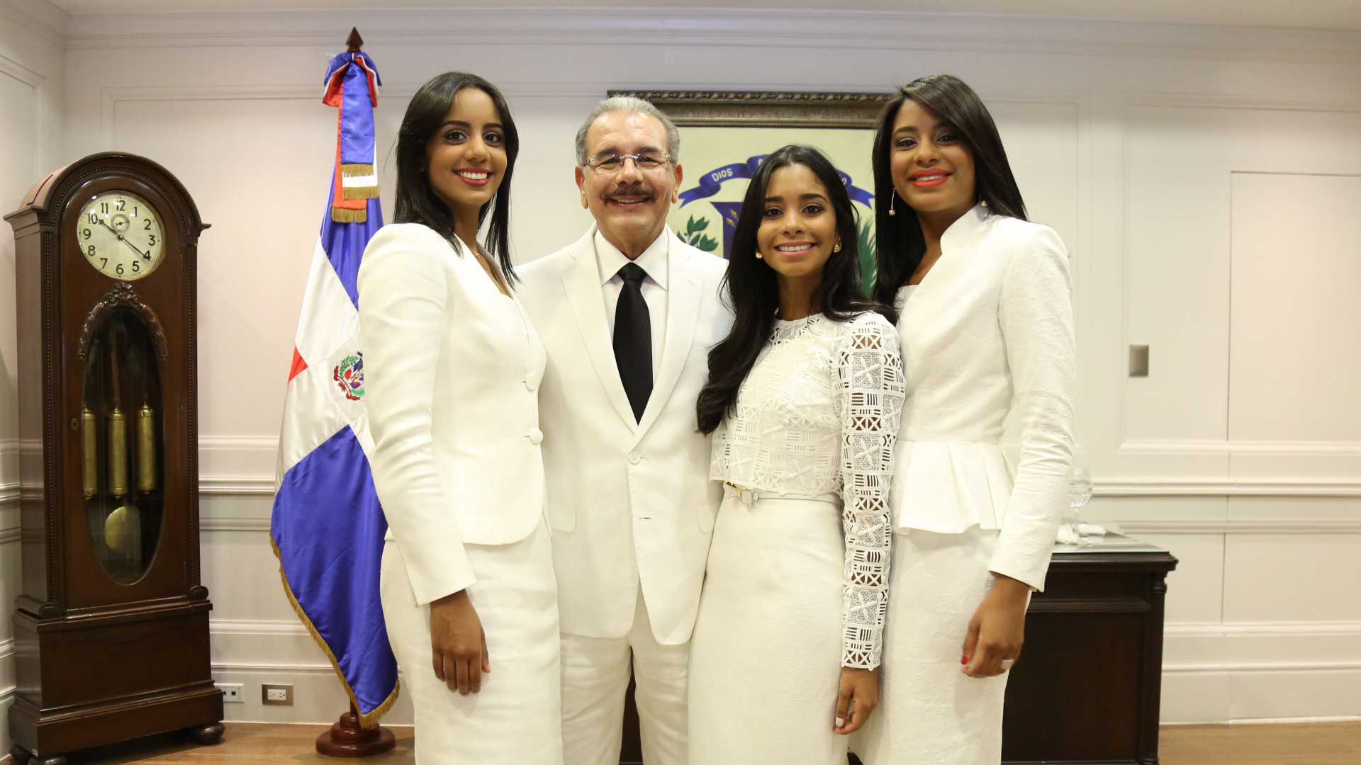 El presidente Constitucional de la República, Danilo Medina Sánchez acompañado de sus hijas Vanessa, Sibely y Ana Paula Medina Montilla.